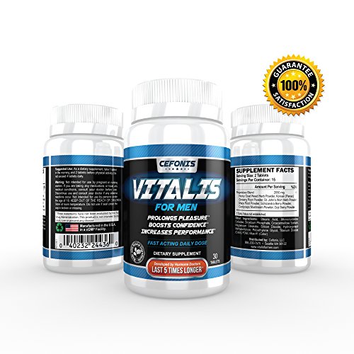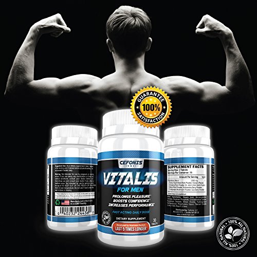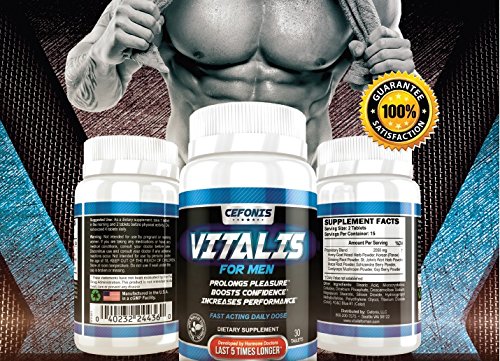 Studio : Cefonis, LLC Publisher : Cefonis, LLC Binding : Health and Beauty Product Description Product details: Recapture your youthful strength, endurance and stamina by replacing lost or low testosterone with Vitalis for Men! By the time men hit 30 years old, their natural testosterone levels are in decline. And while you may not notice it instantly, by the time you're 37 you could be suffering from low stamina, poor sexual performance, and even a loss in confidence. That's why you need Vitalis For Men Testosterone Booster, a natural supplement that helps you regain your dwindling testosterone so you can take back your manhood. Vitalis For Men is specially formulated for men 18 and over who are in otherwise good health. It works naturally to simultaneously combat the factors that cause Erectile Dysfunction and Premature Ejaculation. Developed by an endocrinologist, Vitalis For Men combines ingredients that are not only effective, but also safe. It is available without a prescription and extremely cost-effective. 0