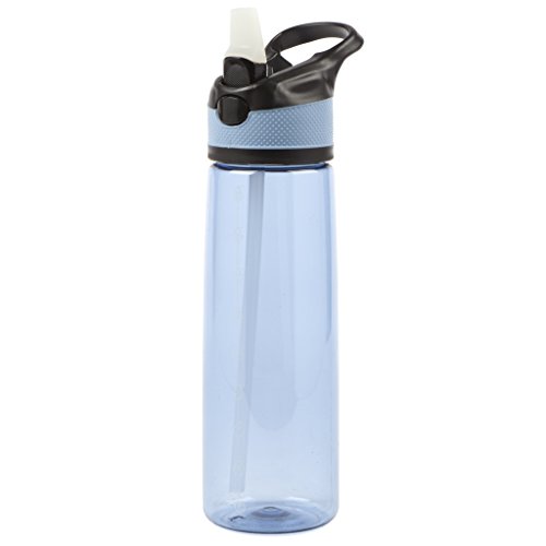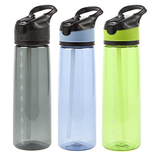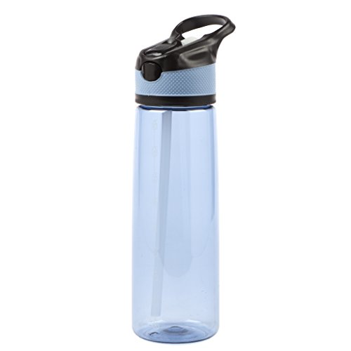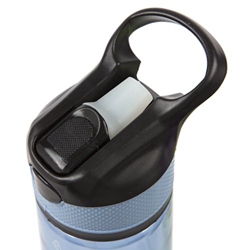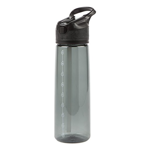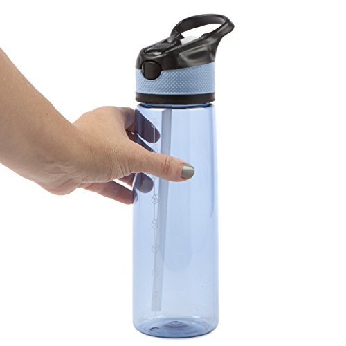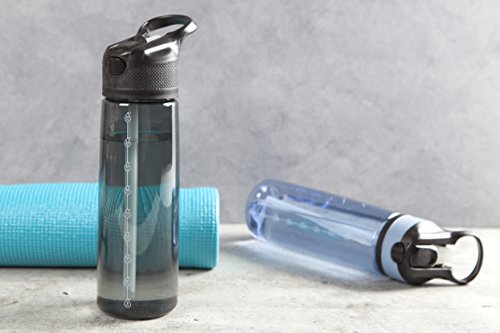 ERGONOMIC DESIGN - This water bottle is designed with textured grip for better handling. Its top lid also features a useful carabiner-style hand grip. The marked measurements also help you keep track of how many ounces of liquid you drink.