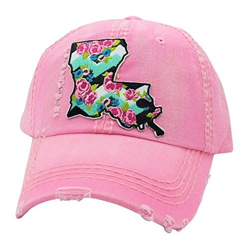 -. Binding : Apparel -. Brand : Loaded Lids -. Color : Grey/Multi/Iridescent -. Department : womens -. Feature : Professionally embroidered patch on a distressed women's fit cap / Floral patch is designed by Loaded Lids in the US / Cap is also designed in US and has a distressed look with a wash finish;features designer style faux leather buckle / Low profile soft cap fits most adult females -. ProductGroup : Apparel -. ProductTypeName : HAT -. Size : One Size -. Title : Loaded Lids Women's Louisiana Baseball Cap With Embroidered Floral Patch