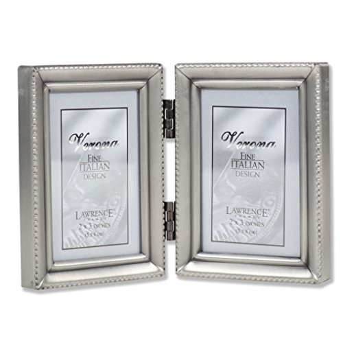 Lawrence Frames Antique Pewter Hinged Double 2x3 Picture Frame - Beaded Edge Design