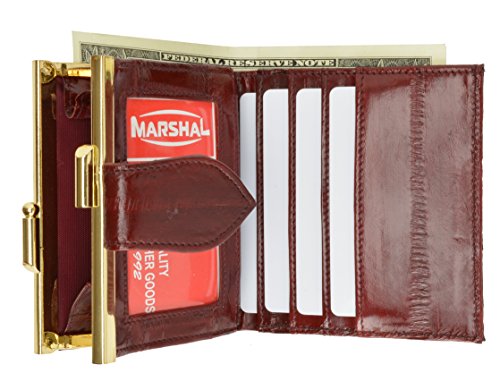-. Feature : Genuine Eelskin leather / Bi-fold Wallet / Credit Card Slots / External pull out pocket with twist snap enclosure