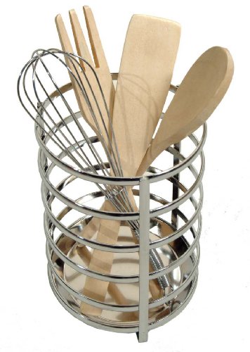 CHROME UTENSIL HOLDER CADDY W/ MESH BASE. 5" DIA X 7.5" H