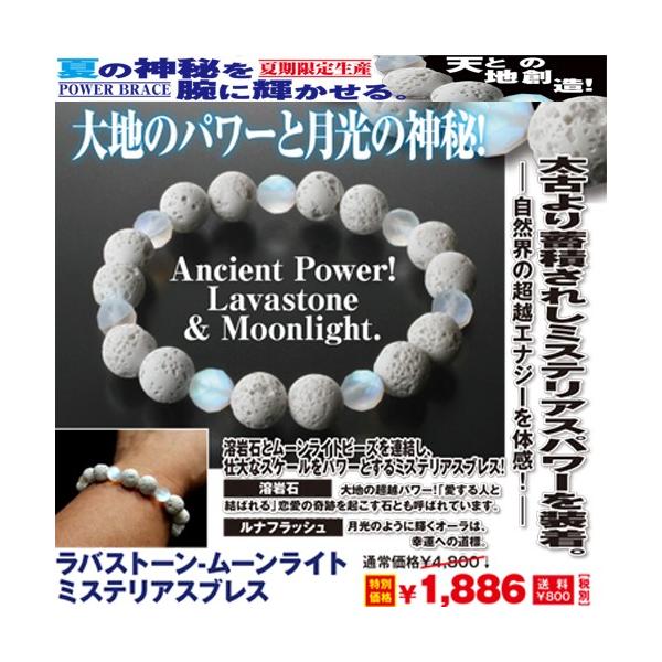 夏期限定生産!夏の神秘を腕に輝かせる。天と地の創造-POWER-BRACE!通常5184円(税込)の処、60%OFF2037円(税込)にて夏期限定販売!大地のパワーと月光の神秘! 太古より蓄積されしミステリアスパワーを装着。 自然界の超越エナジーを体感! 溶岩石とムーンライトビーズを連結し、壮大なスケールをパワーとするミステリアスブレス! ■溶岩石 大地の超越パワー!「愛する人と結ばれる」恋愛の奇跡を起こす石とも呼ばれています。 ■ルナフラッシュ 月光のように輝くオーラは、幸運への道標。 Ancient Power! Lavastone & Moonlight.↓黄金&クリスタル&オーロラ・・・聖衣水晶ブレス↓