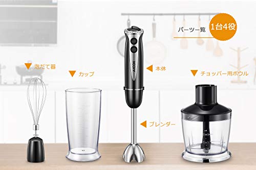 ✦✦✦ご注意 耐熱温度はブレンダー使用時は100度、泡立て器・ビッグチョッパー使用時は85度で、加熱した状態の食材も問題なく調理できます。ただし、安全上の理由で鍋を火にかけたままでの使用はできません。火からおろして、あら熱が取れてから使用してください。 | ✦刻みはおまかせ S形のカーターを付け、ハーブでもタマネギでも、あっという間に刻めます。料理にもうひと工夫加えたいとき、 チョッパーアタッチメントを使えばキッチン周りを散らかさず、目も痛くなりません。 肉、チーズ、ナッツ、野菜などの下ごしらえもあっという間です。 | ✦多用途のアタッチメント&すべてが1台に。 ハンドブレンダーの域を超えて、これ 1 台でどのような調理にも対応します。豊富なオプションで、素早く、簡単に。イージークリックシステムを採用し、アタッチメントをワンタッチで簡単に交換できます。 ✦パッケージ内容 1 * 600ml ブレンダーカップ 1 * 500mlチョッパー用ボウル 1 *泡立て器 1 *ブレンダー 1 *ユーザーマニュアル |