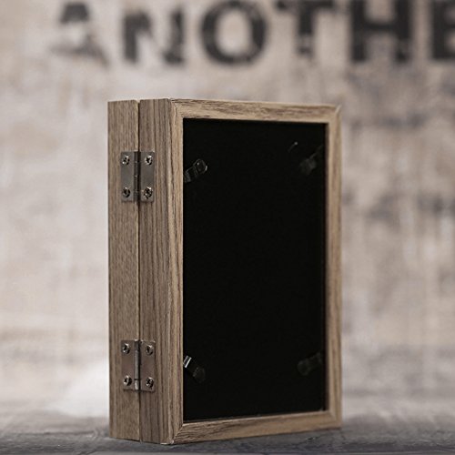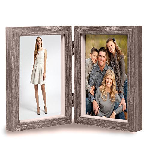 Vintage Wood Picture Frame, Rustic Double Hinged Double Wooden Picture Frame, Vertical Stand Photo Frame, Holds For 4 x 6 inch Photos (Dark...