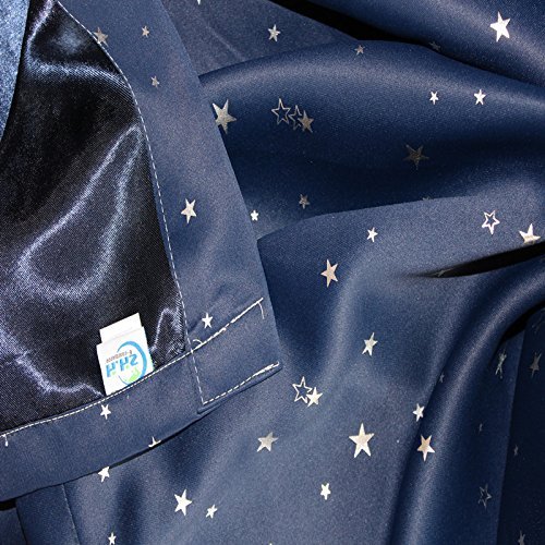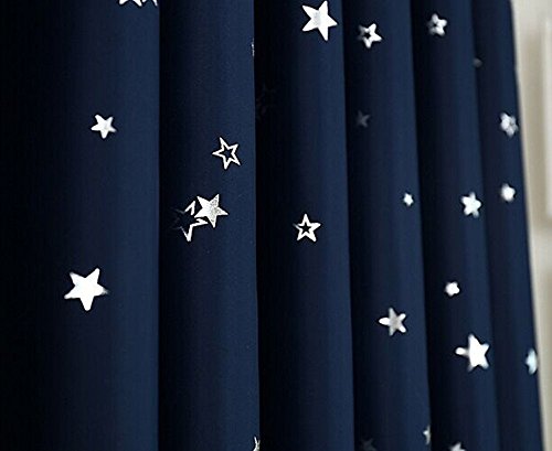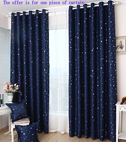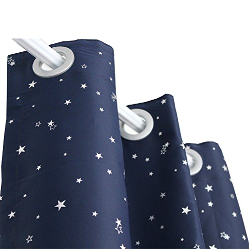 ZHH (One Panel) Navy with Sliver Stars Pattern Blackout Panel Insulated Thermal Grommet Window Curtain, 40-Inch x 52-Inch