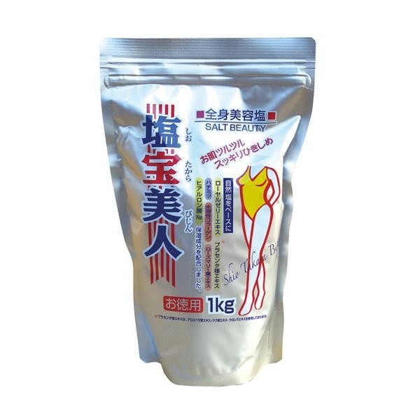 | ミネラル豊富な自然塩にローヤルゼリーエキス、ハチミツ、水溶性コラーゲン、ローズマリー葉エキス、プラセンタ様エキス、ヒアルロン酸Naなど、保湿成分を配合した全身美容塩です。プラセンタ様エキスは、アロエベラ葉エキス・クズ根エキス・クロレラエキスを使用しております。 |
