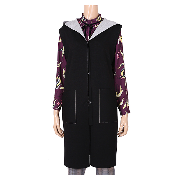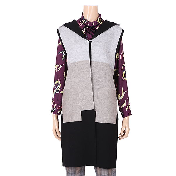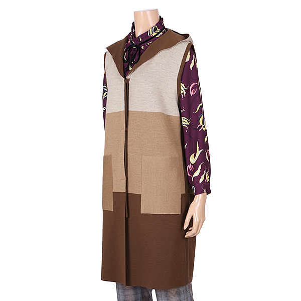 투톤의 단아하고정갈한리버시블의 세련된겹후드롱니트베스트