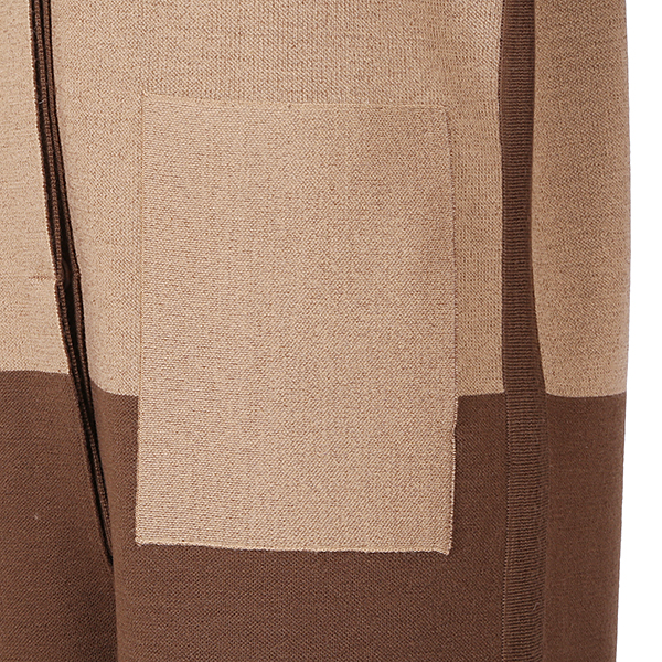 베이지와브라운의 투톤색상총장의 브라운 옆선의 브라운과 블랙의 곁단의 엣지스러움으로 날씬해 보이는 제품 입니다