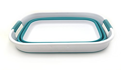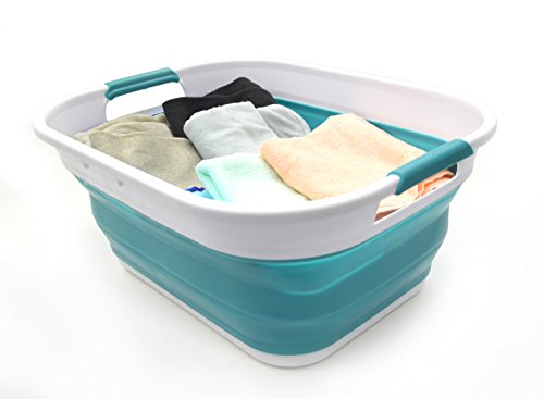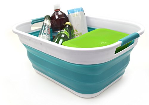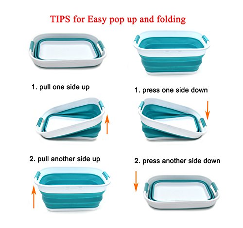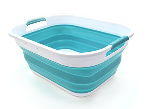 SAMMART Collapsible Plastic Storage Basket - Foldable Pop Up Storage Container / Organizer - Portable Washing Tub - Space Saving Hamper / Basket - Outdoor Storage Tub (Bright Blue)