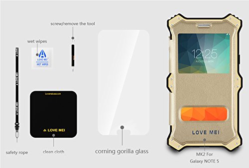 -. Feature : Note 5 Case, Aluminuml Metal Frame with Leather Case for Samsung Galaxy / 100% Brand New &Perfectly fits for your samsung GALAXY Note 5 N920 / Made of high-quality material.waterproof & Shockproof & Dustproof,Shockproof Waterproof Dust/Dirt/Snow Proof Aluminum Metal Gorilla Glass Protection Case Cover for GALAXY Note 5 N920 / Protect your phone from dust, scratching and shock. / Fashion design, easy to put on and easy to take off.