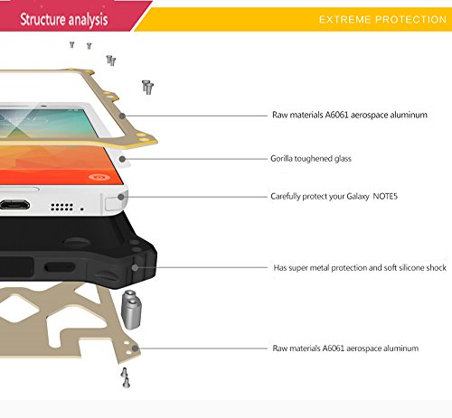-. Title : Note 5 Case,PERSTAR Shockproof Waterproof Dust/Dirt/Snow Proof Aluminum Metal Gorilla Glass Protection Case Cover for Samsung GALAXY Note 5 N920