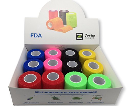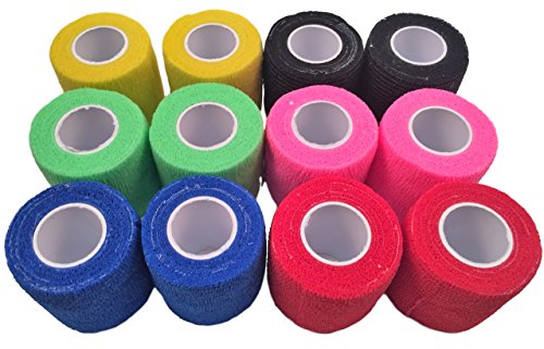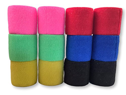cohesive tape - self adhesive athletic wrap – 12 rolls (rainbow) – 2 inches by 15 feet