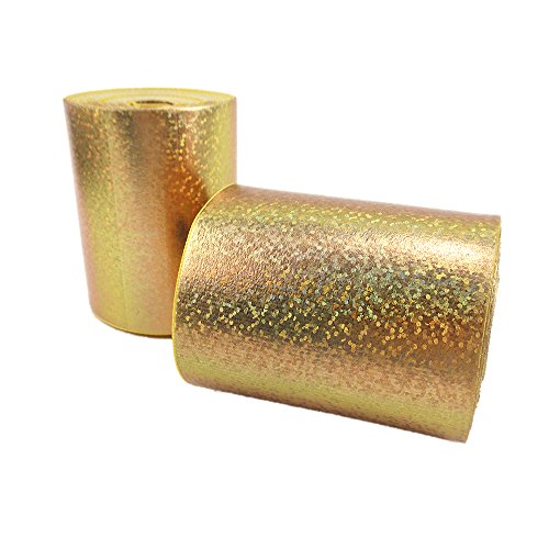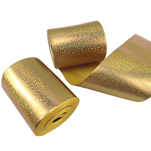3" Wide 5 Yard DIY Dot Sequins Holographic Laser Grosgrain Ribbon For DIY Handmade Hair Bow Clip Accessories And Festival Wedding Party Birthday Bridal Shower Decoration (Gold Dot Sequins)