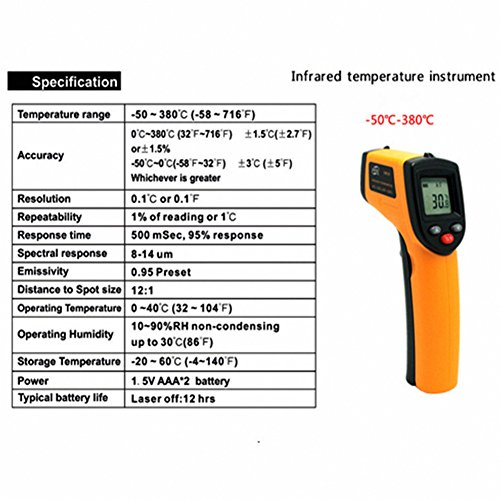 Boboai Non-contact Digital Laser Infrared Thermometer -58℉~ 716℉ (-50℃~380℃) with Laser Point and LED Backlight