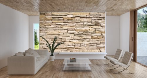 - Title : Stonewall Photo Wallpaper - Asian Stonewall Light Brown Mural - Stones Wall Decoration