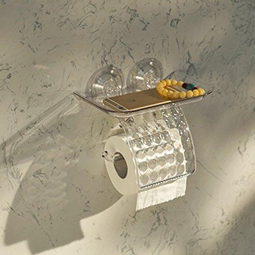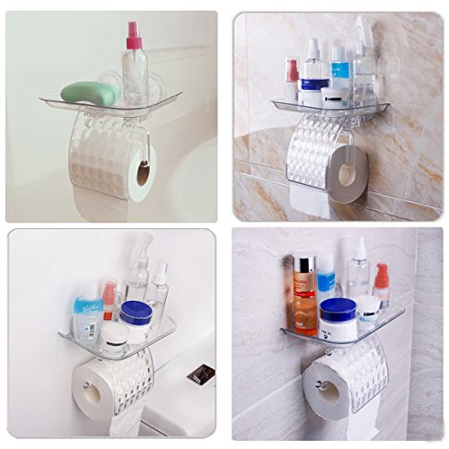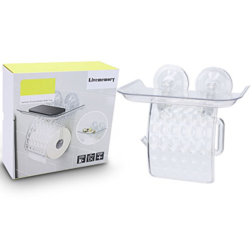 Livememory Toilet Paper holder Tissue Roll Holder Suction Cup Toilet Tissue Holder with Tray and Cover for Bathroom Kitchen and Office