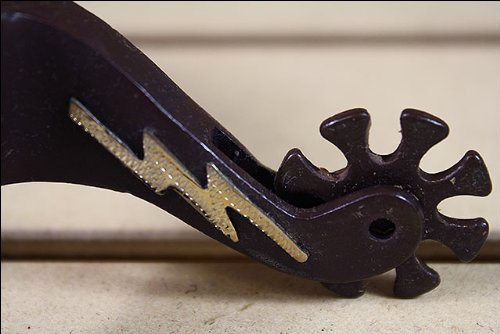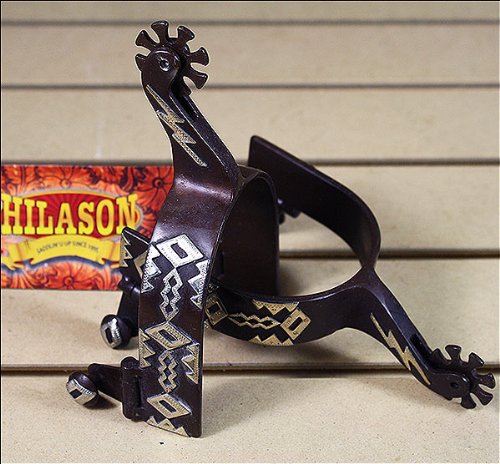 Studio : American Heritage Equine Publisher : American Heritage Equine Binding : Misc. Product Description Diamond Pattern Antique Brown Men's SpurClassic style silver engraved diamond pattern also has a lightning bolt design. It's antique brown with 8pt rowels. These details really show off your great taste. Any cowboy would be proud to wear these classy spurs.One Size 0