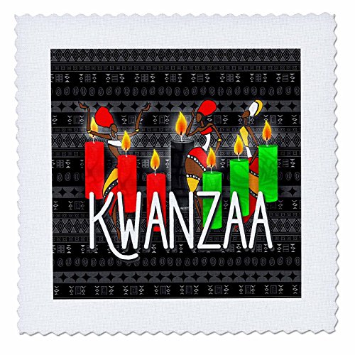 3dRose Kwanzaa African American Dancers and Kinara Candles Quilt Square, 12 x 12"