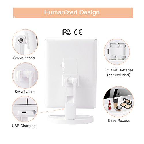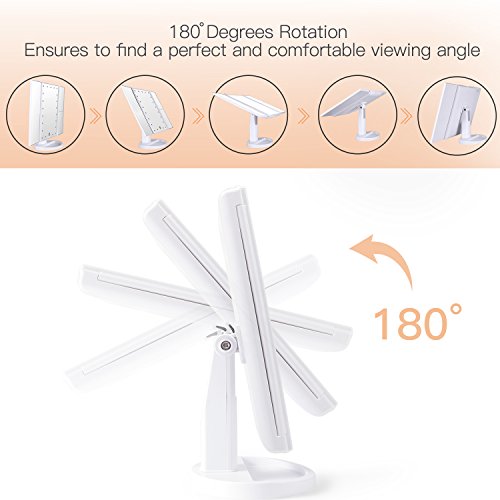 - 180-DEGREE FREE ROTATION: The lighted makeup mirror stands on your countertop can be freely adjusted and fixed a perfect and comfortable viewing angle. Detachable design makes you can take it anywhere you go.