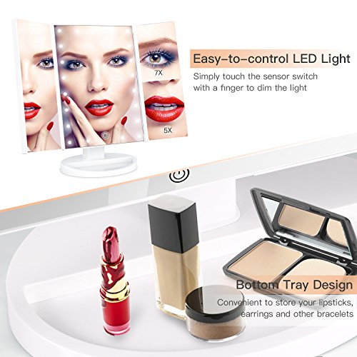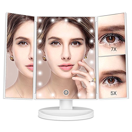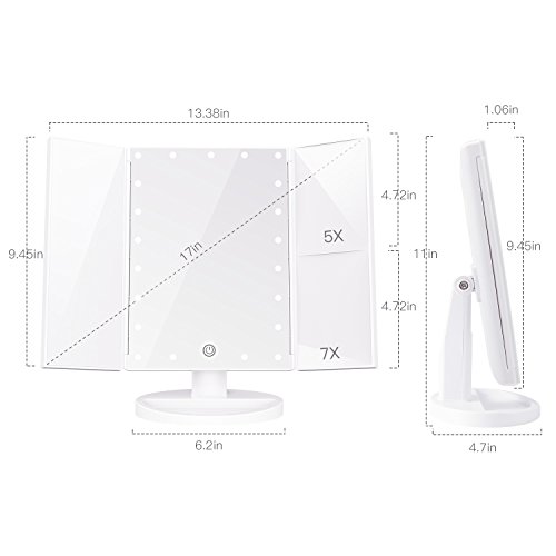 - HIGH QUALITY TRIFOLD DESIGN:Our vanity mirror designed by special crafted with quite elegant and sleek appearance, more color choices.Trifold design easy for daily maintenance, can fold it like a book when not using to protect it away from the dust or scratches.