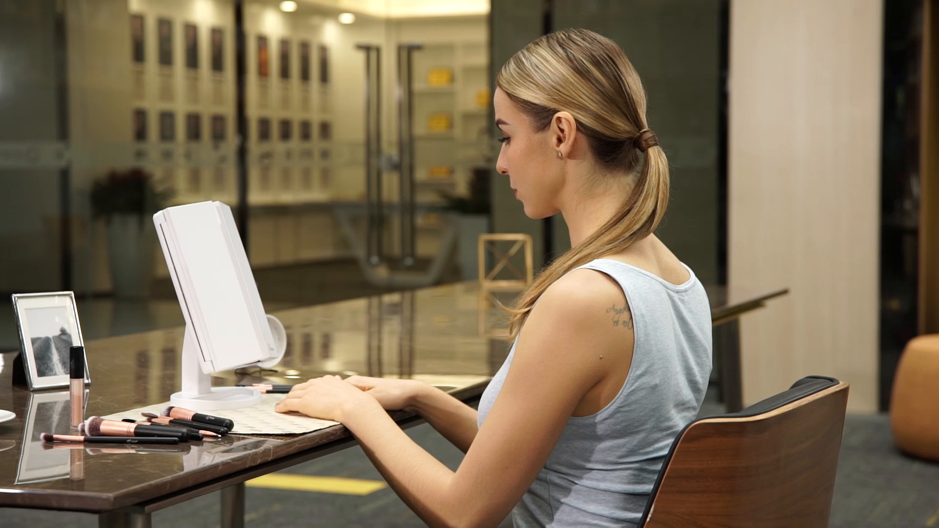 - 21 PIECES LED LIGHT: Mirror is built-in 21 pieces adjustable Leds,allow you makeup in the dark or poorly lit areas.LED lights brightness adjust by the touch sensor switch.