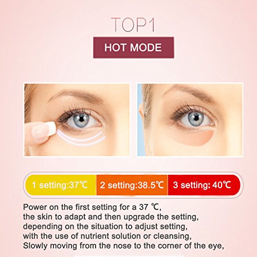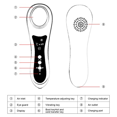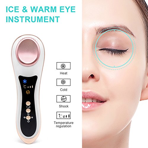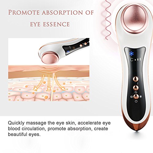 Skin firming care After absorption of skin care products, open cooling/acoustic vibration model, can shrink pores. HOW TO USE Make sure you take off your glasses before you start using. If you wear contact lenses, it is recommended to remove. Press the on/off button for 1 seconds, along with the buzzer, start the machine. Before apply the eye cream, it is recommended to put the eye guard on the forearm to test temperature. Press the on/off button then select the cold mode or hot mode. Note * This product can only be used for soft protection up and down eyes. * The frequency of use of this product should not exceed 3 times a day, otherwise it may cause skin eye allergies. * At least once every 3 months full charge to maintain battery life. Package include
