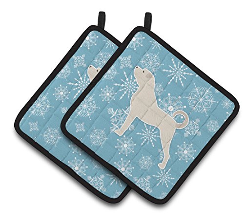 Caroline's Treasures Winter Snowflake Anatolian Shepherd Pair of Pot Holders BB3577PTHD, 7.5HX7.5W, Multicolor
