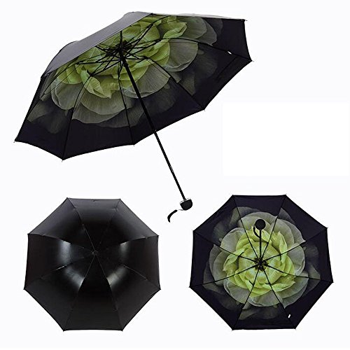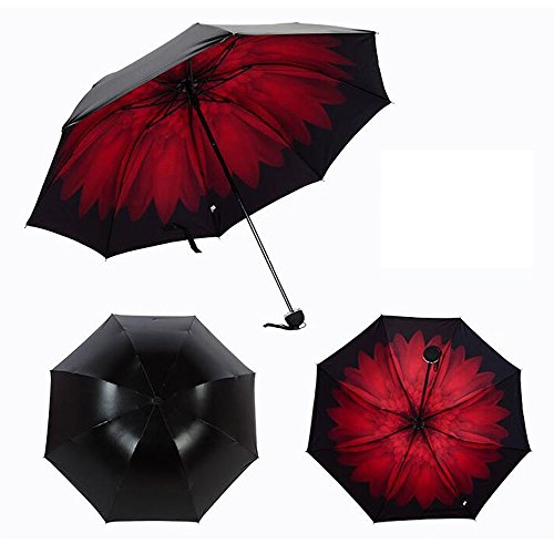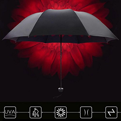 -. Title : LOHOME® Ultralight Sun Umbrella, UV Protection Small Black Parasol 3 Folding Umbrella Great for Sunny and Rainy Day with Flower Contrast Lining