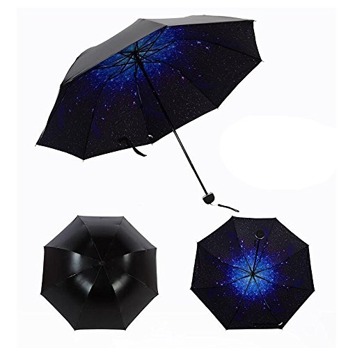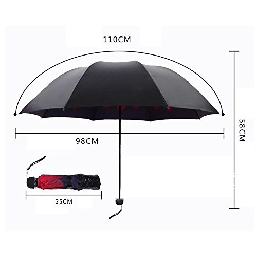 -. Feature : Wind resistance, waterproof, anti-UV and light reflecting. / Sun block umbrella will keep you cooler when standing in the sun. / You will "Love it in the Sun" and "Need it in the Rain". / Umbrella Ribs: Stainless steel,High qulity Triple Folding umbrella / 3 folding portable compact design, easy to carry and put up and down.