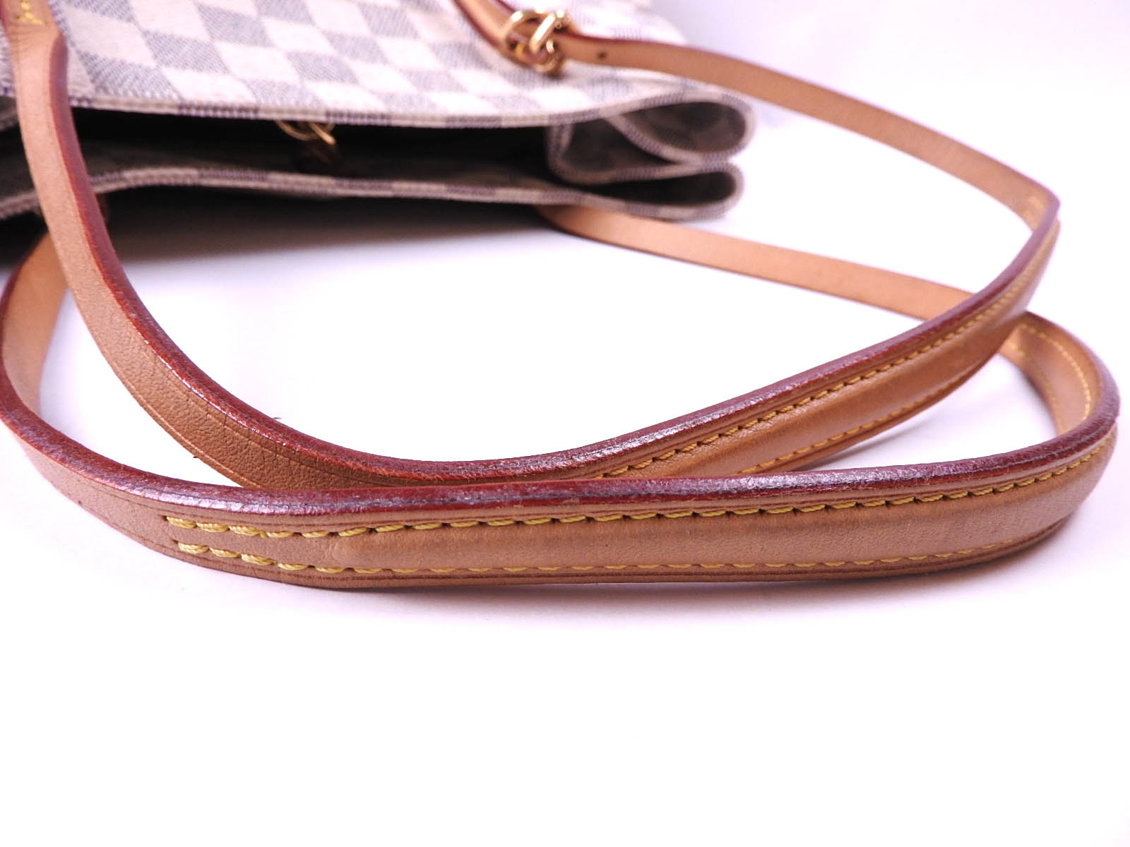 | Exterior | Damier azur canvas: Barely used feeling. Slightly stained. |