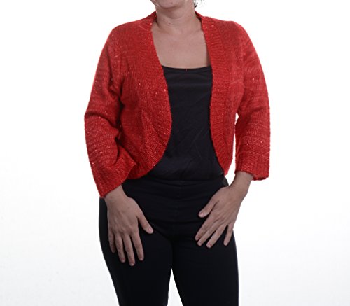 (NY Collection)/Women/Sweaters/DIRECT FROM USA/NY COLLECTION RED /-SLEEVE SEQUIN SHRUG :