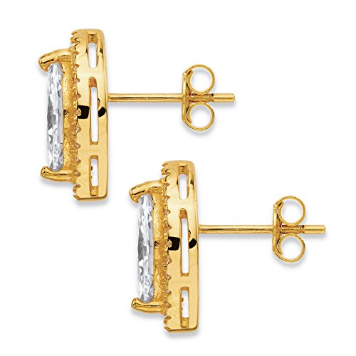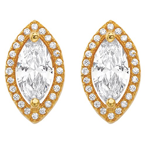 Stunning sparkle in an elegant design, these marquise-cut stud earrings are 2.32 carats T.W. of pure cubic zirconia glamour. The large faceted center stone and smaller round cz accents will light up the room and your face with each turn of your head. Richly plated in 14k gold. - 58163Feature
