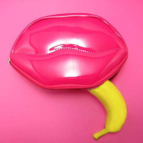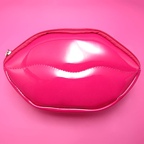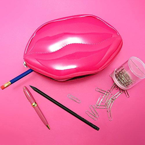 Lips Shaped Vivid Color PVC Pencil Case with Zip Closure Pencil Holder Carrying Case Makeup Case Cosmetic Pouch Pen Container, 7.9” X 4.7” X2.4”(pink)
