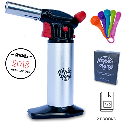 Cooking Torch For Creme Brulee By Pepe Nero: Culinary Torch - Kitchen Torch - Blow Torch - Professional Torch - Butane Lighter - Chef Torch - Creme Brulee Torch - Gifts: Measuring Spoons & Ebooks