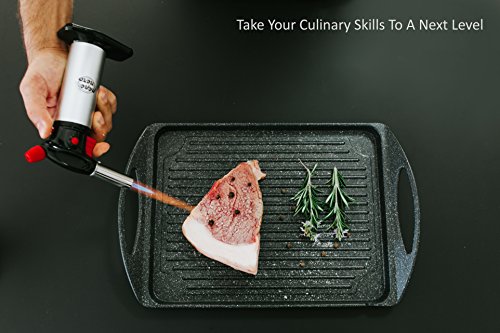 FIRE THINGS UP! FUN USES FOR OUR COOKING TORCH: Caramelizing the sugar on top of a crème brûlée might be what comes to mind when you think of using a cooking torch, but there are actually a wide range of ways to use this one in the kitchen: glazing sugar or fruit on top of a ham, browning the top of meringues and tarts, flash searing a piece of fish, toasting breadcrumbs, and torching wood to impart a smoky flavor to a dish or cocktail. It is A great tool - It is a great Kitchen Torch.