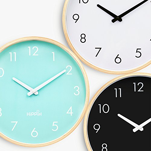 -. Title : Large Silent Wall Clock Non Ticking Digital Quiet Sweep Decorative Vintage Wooden Clocks with Glass Cover by Hippih