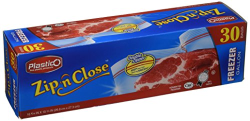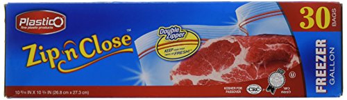 Plastico Zip 'N Close Double Zipper Resealable Plastic Freezer Bags, 30 Count