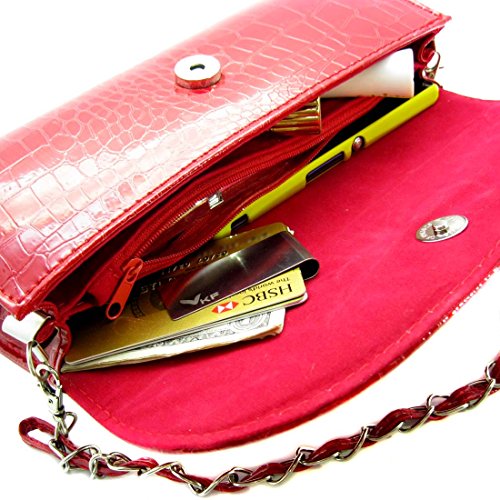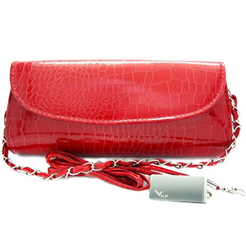 Product Description Missy K Crocodile Skin Embossed Faux Leather Clutch Purse is simple, small and suitable for many occasions such as business meeting, evening party, ball, dinner party and wedding. Comes with a short chained strap of 18 inches and a long faux leather belt of 50 inches, you can easily convert this clutch purse into a dainty handbag or an elegant shoulder purse.