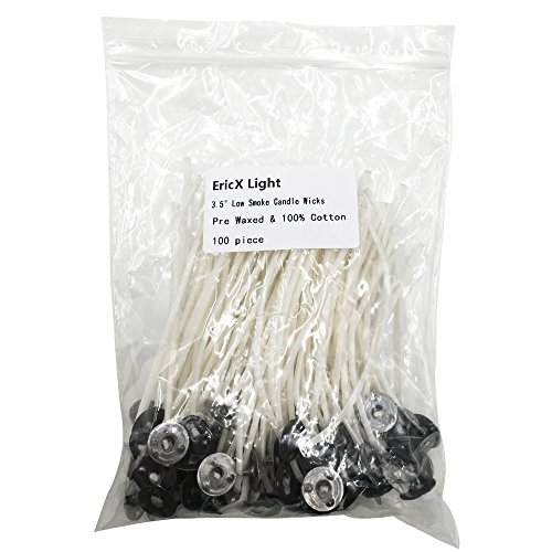 EricX Light 100 Piece Natural Candle Wick, Low Smoke 3.5" Pre-Waxed & 100% Natural Cotton Core,For Candle Making,Candle DIY