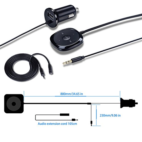 Studio : SMARTUS Publisher : SMARTUS Binding : Wireless Phone Accessory Product Description Description: Up to 93dB SNR and low audio distortion of 0.05%, fully satisfy your demand for high quality audio. Support hands -free function, you can listen to music while the bobble any phone. Support up to 5 phone connection, and connect to the last one priority paired phone. Start Using our Bluetooth Hands Free Car Kit; Take Phone Calls Easily With Clear And Noise Reduction Quality Audio And Listen Music From Your Phone. Wireless Environment In Car - This is an instant solution to turn your car into a hands-free wireless environment where you can make or receive calls on your phone via your car stereo or even listen to music on your phone. Clear Noise Cancelled Audio Quality - With the Ground Loop Noise Isolator, you are able to make calls comfortably and with clarity and also listen to quality sound while playing music. Hassle Free Driving - Make your driving very comfortable. The Bluetooth technology in the Bluetooth car adapter allows you to connect with car audio system without any wires. This device provides very stable signal transmission to enable users to make crystal clear phone calls. Also this device significantly consumes very lower power. Compatibility - The Bluetooth car adapter works with all Bluetooth devices and cars with a 3.5mm AUX port where you can connect the car kit and stream music from your phone onto the car stereo.