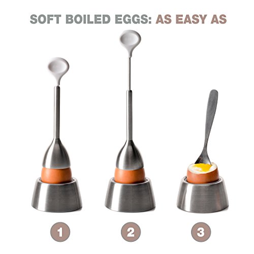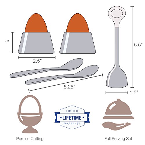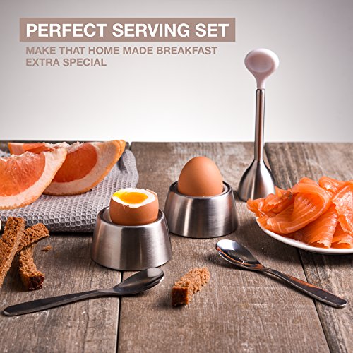 MULTIPLE USES: Use the egg cups and spoons as small serving sets for dips and sauces, just remove the silicone insert and you have a modern dipping set. The egg spoons are perfectly rounded not only for the inside of the egg but also for serving a dip.