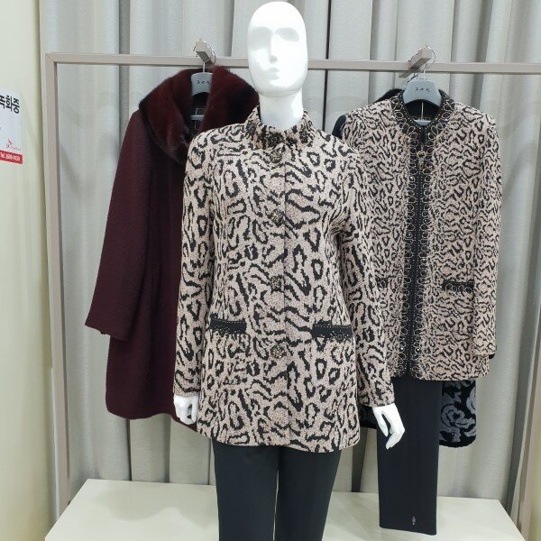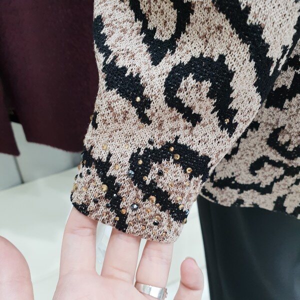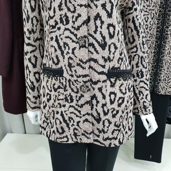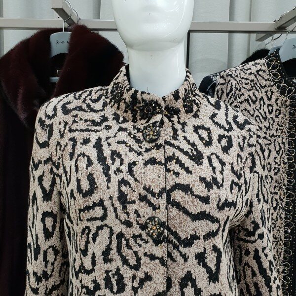 똑딱이 여밈 호피무늬 니트소재 자켓