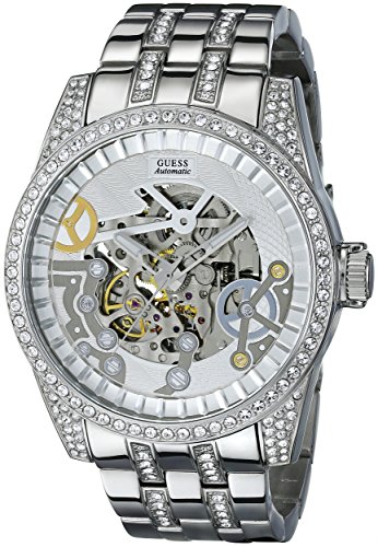 -. Title : GUESS Men's U0012G1 Exhibition Automatic Silver-Tone Watch