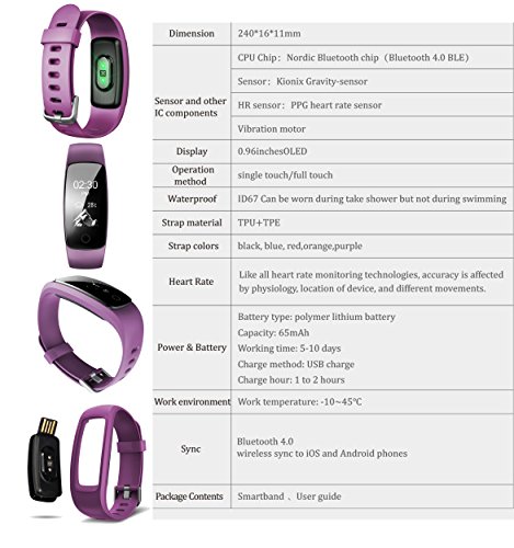 WatchTech Fitness Tracker Armband Smart Watch Wasserdicht Ip67, Smart Bracelet Wristband Mit Herzfrequenz Damen Herren Schlafanalyse/ Kalorienzahler/ SMS SNS Call Benachrichtigung/ Wetter Pu