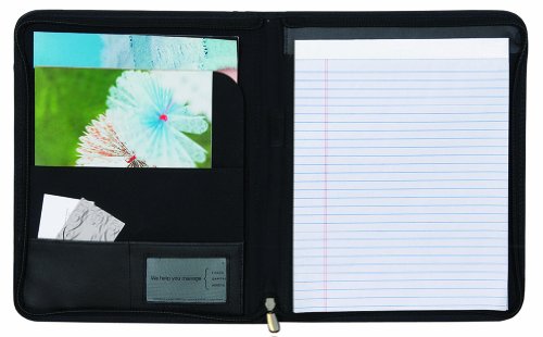 - Feature : Three-sided zipper closure, Inside pen loop, / Individually boxed / Pen and paper pad included / Inside slash and business card pockets / 9.75" W x 12.5" H x 1" D