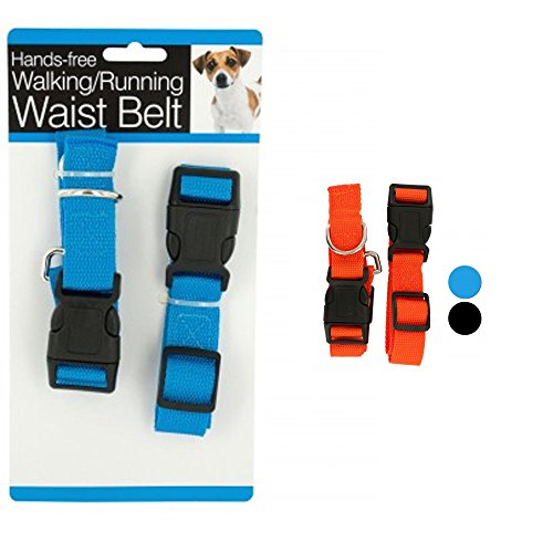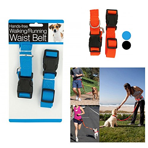 Available In: Blue, Black And Orange, colors randomly shipped, listing is for 1 pack Go running or strolling with your pet with this hands free dog walking running waist belt Featuring a hands free leash system that is designed for active people and active dogs. It is perfect for jogging, hiking and even puppy training. The leash is secured around your waist, leaving your hands completely free for whatever you need. Easy-to-use, strong nylon, fully adjustable belt and leash is durable yet comfortable. Leash hook is rotatably and leash connects to belt with a buckle that is easy to wear and remove. There is a quick release mechanism on belt so leash can be released immediately in case of emergency. Leash can be converted to a traditional hand-held leash. Traction leash is approximately 30"-55" long; leash connect is 6.2" long and waist belt fits waists 23"-39". One size fits most. Comes in assorted colors. Comes packaged to a hanging panel. * Ideal for walking, jogging, hiking or running waist belt * Quick release mechanism for emergency