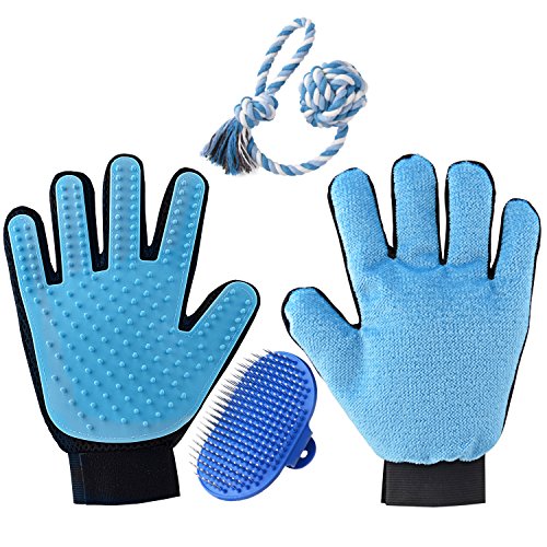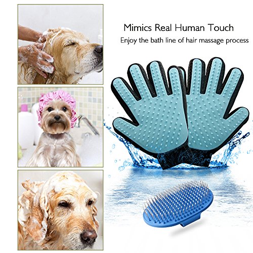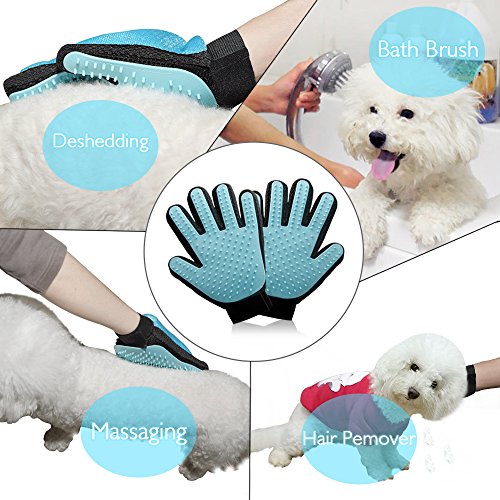 Massage Tool: With 180 silicone grooming tips, mimics the touch of your hand for a soft and relaxing massage; This flexible, slip-on grooming gloves allow you to brush away dirt, dander and loose hair from cats and dogs .