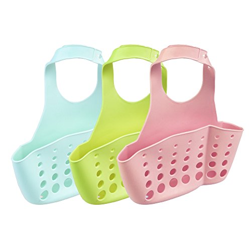 Kloud City Pack of 3 Silicone Faucet Hanging Drain Basket Kitchen Sink Caddy Soap Sponge Holder Organizer Kitchen Bathroom Gadget Storage Bag