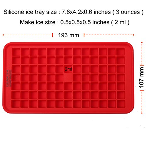 HOMKOM - 91 Cavity / Square Silicone Mini Ice Cube Tray Ice Mold Ice Maker - Freezer Safe / Make Amazing 0.5 Inches Square Ice Cubes ( Red )